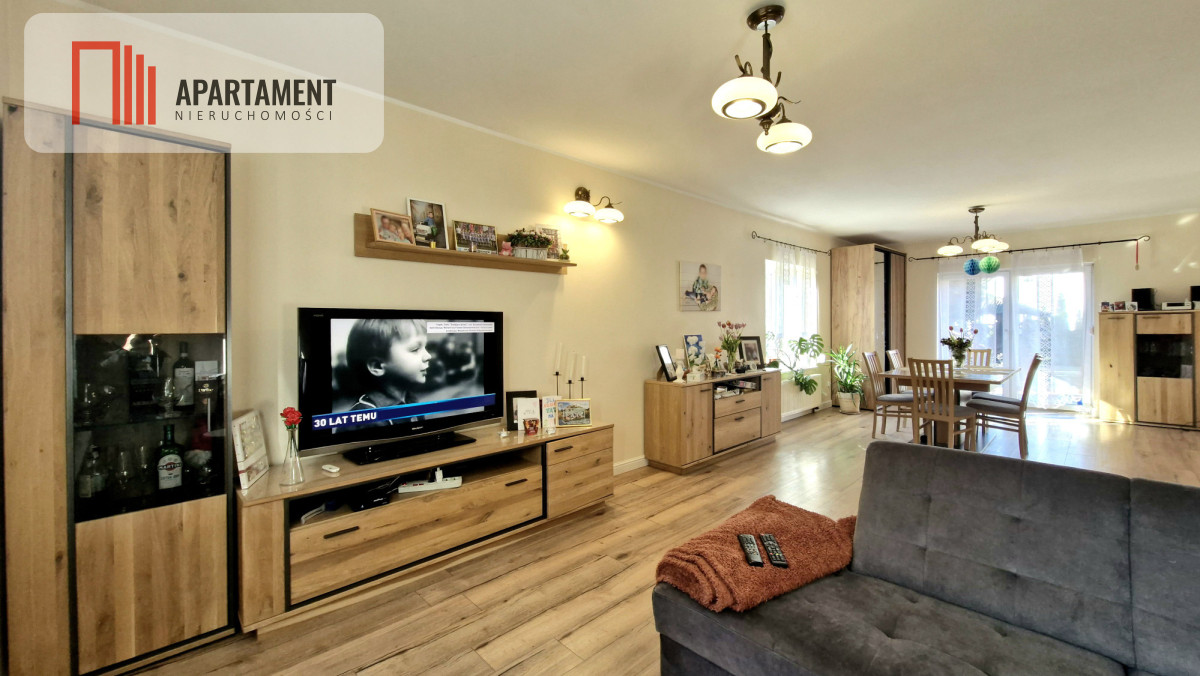 • przestronny i jasny salon z miejscem do wypoczynku i jadalnią (możliwość wydzielenia osobnego pokoju)