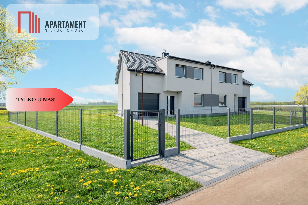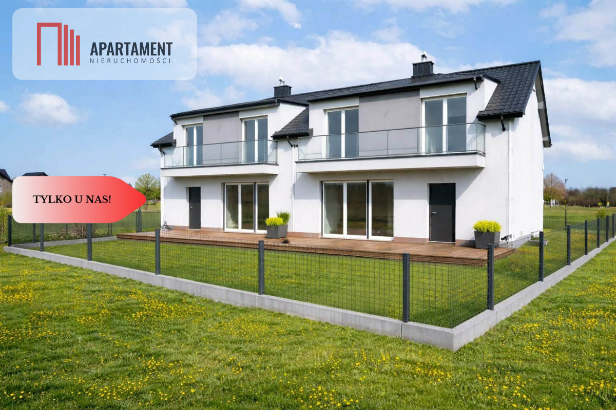 Oferty dotyczy sprzedaży jednego z dwóch mieszkań w domu dwulokalowym położonym na osiedlu nowych domów jednorodzinnych w miejscowości Ciechów oddalonej zaledwie 5 km od Środy Śląskiej. Mieszkanie sprzedawane są w stanie deweloperskim z pozwoleniem na użytkowanie, każde o powierzchni całkowitej 123,93 m2 z przynależną działką o powierzchni 700 m2. W bryle budynku jednostanowiskowy garaż. Ogrzewanie domu i wody użytkowej pompą ciepła. Ogrzewanie podłogowe w całym mieszkaniu. Mieszkanie przygotowane do wykończenia. Przedstawione wizualizacje pokazują jak finalnie może wyglądać nieruchomość oraz pomieszczenia wykończone pod klucz. Funkcjonalny układ pomieszczeń idealnie sprawdzi się przy 4-5 osobowej rodzinie. Media: woda, prąd, szambo. Dookoła zielona okolica. Dojazd drogą wewnętrzną, gruntową. Wysoki standard wykończenia budynku. Na powierzchnię lokalu składa się: