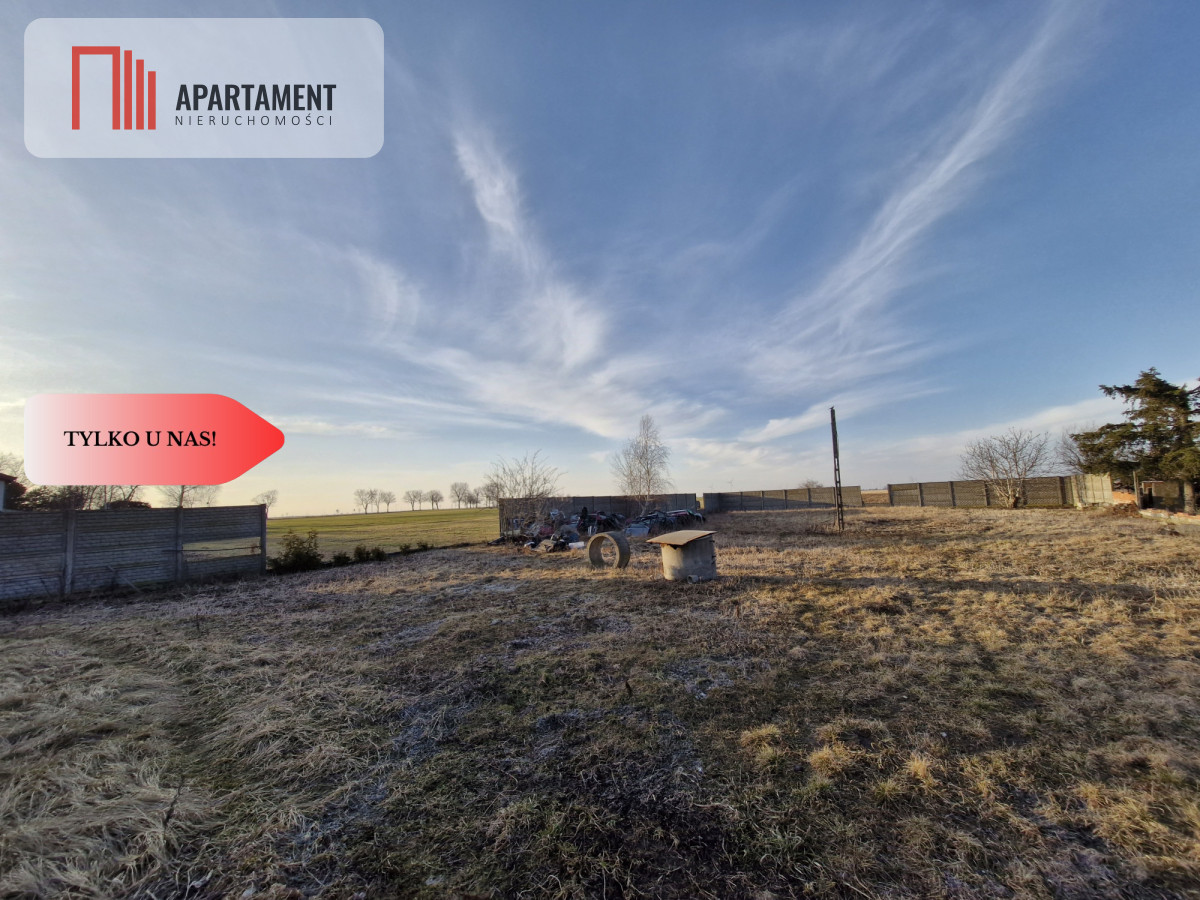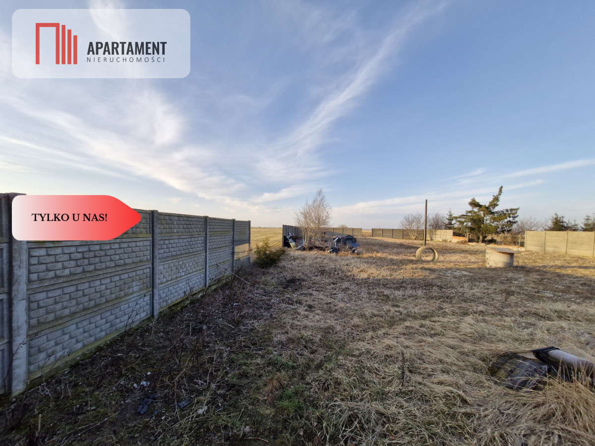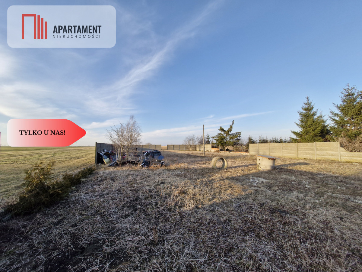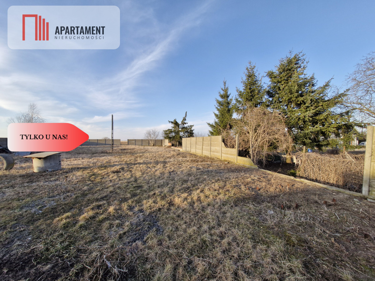 Jej powierzchnia to 1559 mkw., ogrodzona płotem betonowym, kształt prostokąta, teren płaski, wykopana własna studnia, przyłącz do sieci wodociągowej oraz kanalizacja tuż przy działce.