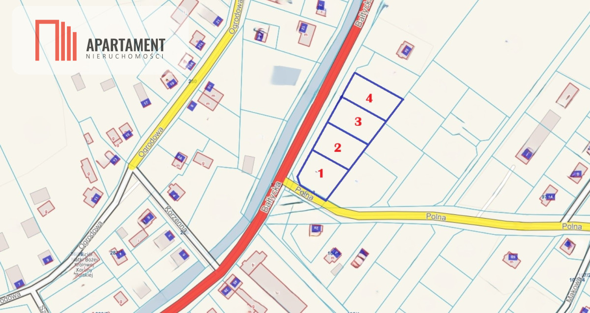 - 4 działki o łącznej powierzchni 4031 m²