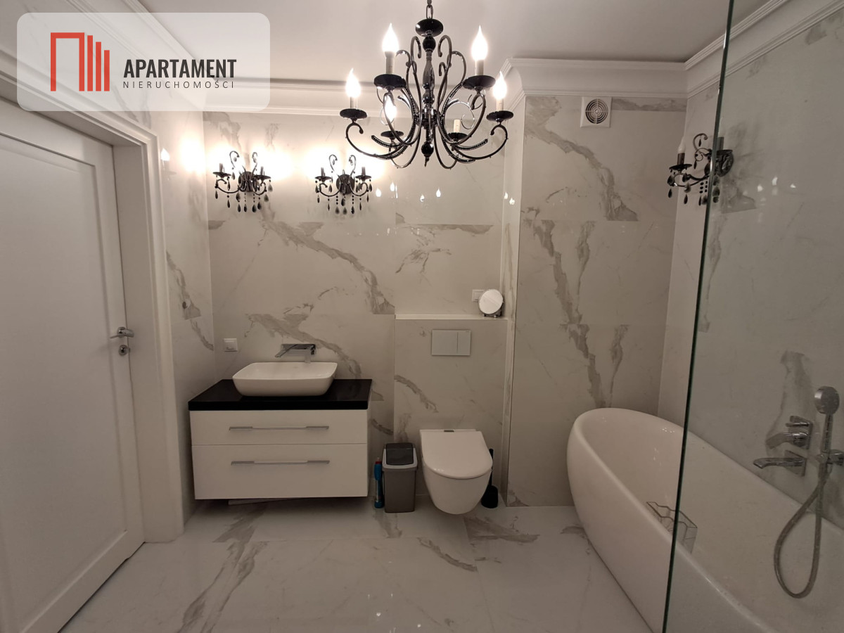 Standard wykończenia: mieszkanie wykończone z najwyższej jakości materiałów, m.in. podłogi z litego drewna dębowego, zabudowa przedpokoju, kuchni oraz meble łazienkowe wykonane na zamówienie u stolarza, urządzenia AGD energooszczędne jeszcze zafoliowane!