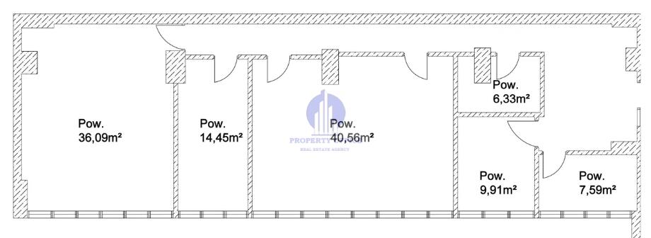 Lokal biurowy w układzie gabinetowym, w podziale na:
