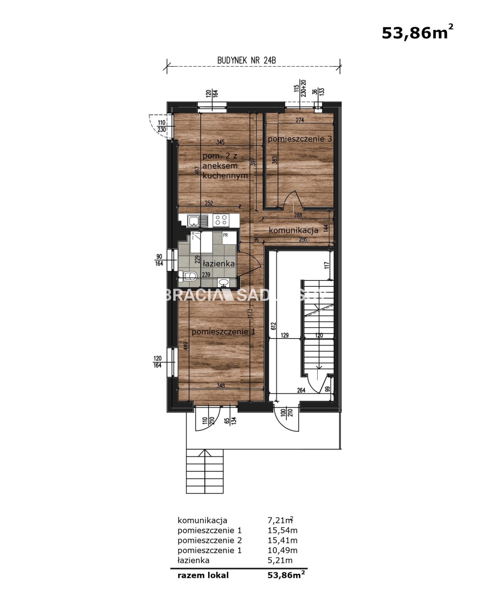 Powierzchnia nieruchomości: 53,86 m² - powierzchnia użytkowa mieszkania
