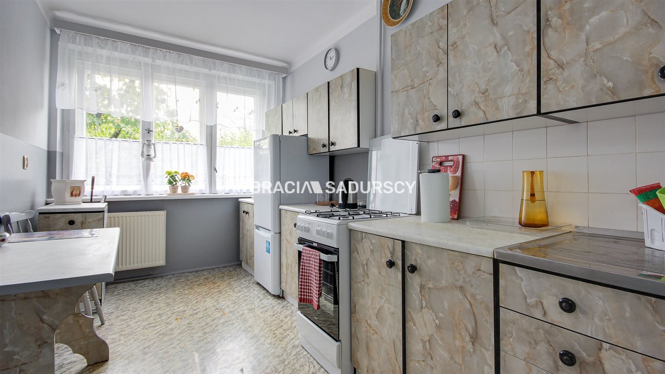 Dom składa się z dwóch niezależnych kondygnacji, oraz piwnicy z garażem. W budynku znajdują się cztery pokoje, dwie kuchnie i dwie łazienki. Pokoje są przestronne, ustawne wyłożone parkietem na parterze oraz panelami na piętrze. W kuchniach jak i łazienkach terakota. Na poziomie piwnic znajduję się duży garaż o pow. 30,70 m 2 oraz pomieszczenia gospodarcze. Budynek położony jest na ogrodzonej i zagospodarowanej działce o powierzchni 741 m 2 , krótszym bokiem ok 20m przylegającym do drogi.
