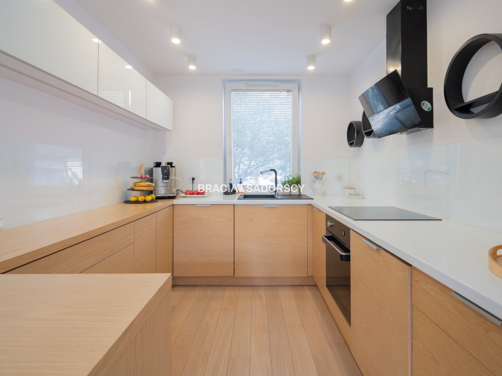 Kuchnia na wymiar w okleinie naturalnej, z pełną zabudową oraz sprzętem AGD.
