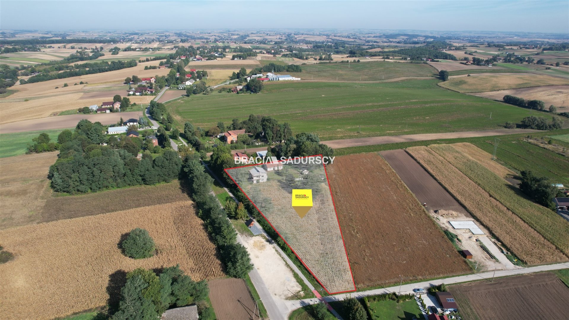 Sieradzice gmina Kazimierza Wielka. Działka o pow. 8300 m2 zabudowana dwoma domami mieszkalnymi. Przedmiotowa działka leży w terenie nieobjętym miejscowym planem zagospodarowania przestrzennego. Działka oddalona ok. 11 km od Proszowic, ok. 10 km od Kazimierzy Wielkiej. Działka płaska zabudowana dwoma domami z lat 50. ok. 100 m2 i lat 80. ok. 200 m2 z bezpośrednim dostępem do drogi publicznej o niewielkim, lokalnym ruchu oraz nowo wybudowanej trasy rowerowej. Przy działce usytuowana jest jedno z dwóch miejsc postojowych ścieżki przyrodniczo-rowerowej.