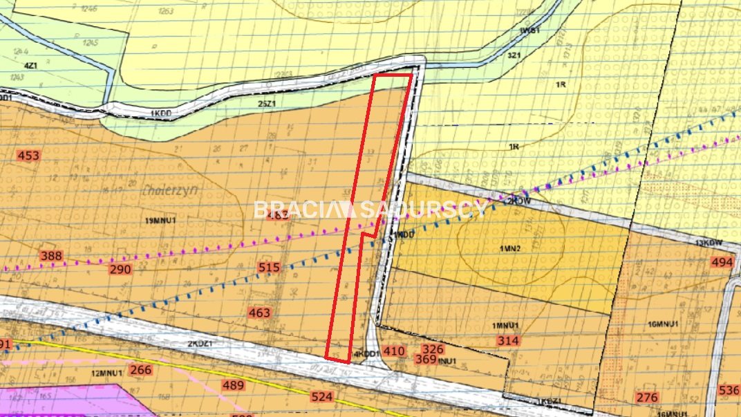 Ze względu na istniejący bezpośredni dostęp do drogi powiatowej nr 2189K relacji Kryspinów - Cholerzyn - Mników - Frywałd optymalnym sposobem zagospodarowania jest inwestycja w zespole działek 33/3 i 34/2 - wybudowanie osiedla budynków mieszkalnych jednorodzinnych w zabudowie bliźniaczej lub wolnostojącej z drogą dojazdową po działce 35.