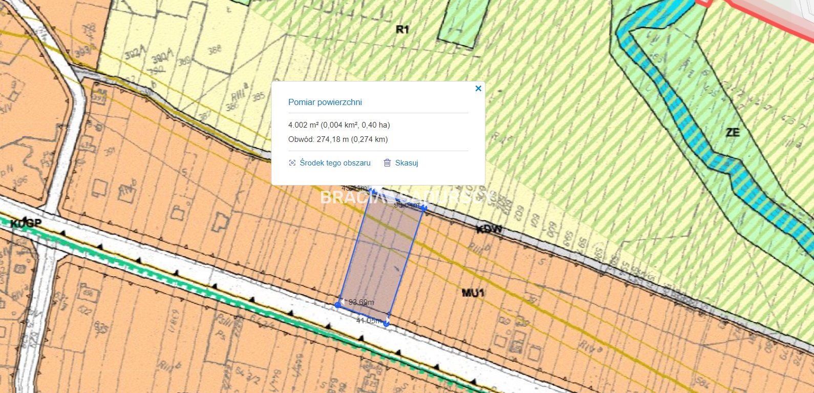 - zabudowy mieszkaniowo-usługowej oznaczonym symbolem MU1 - na powierzchni ok. 40 a