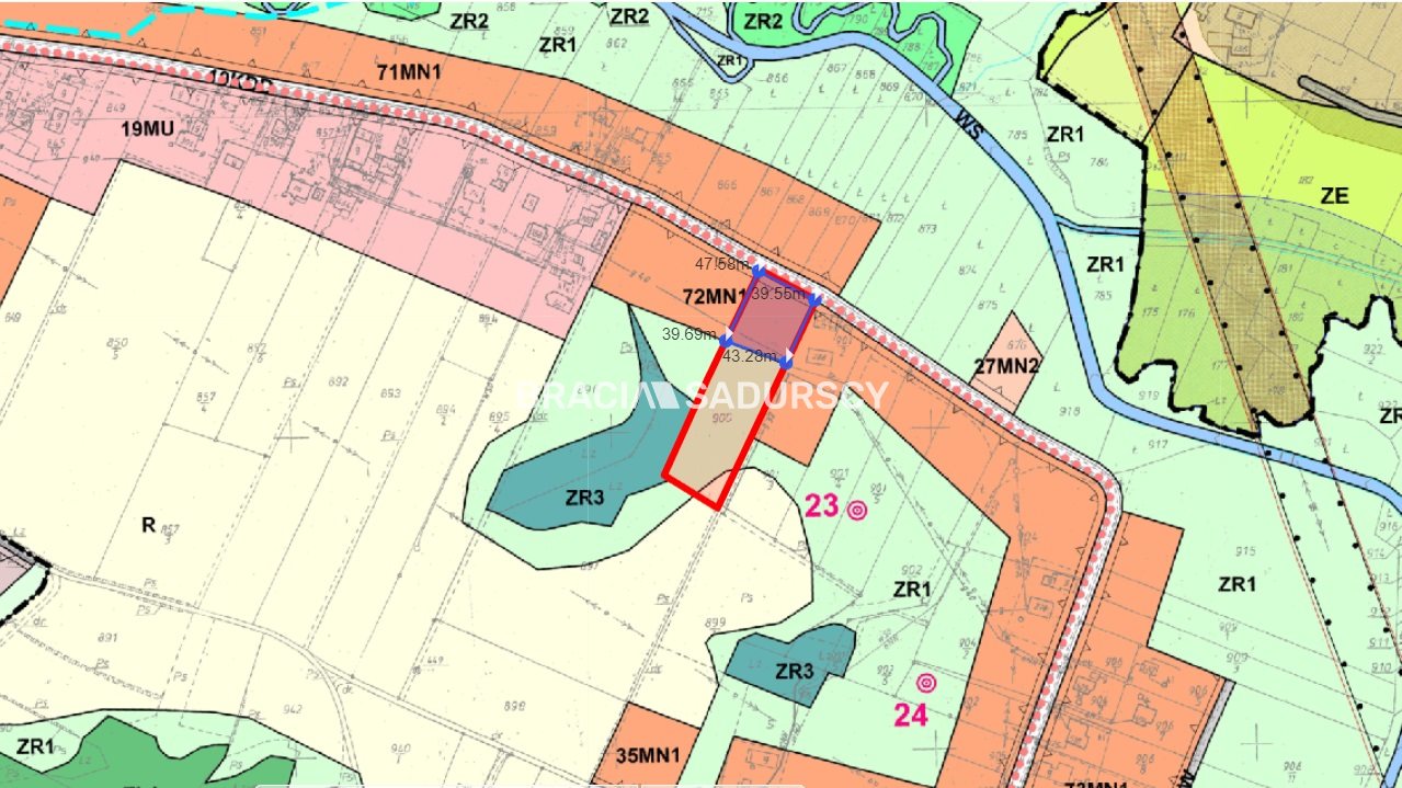 - zabudowy jednorodzinnej (MN1) - ok. 18a (40x45 m)