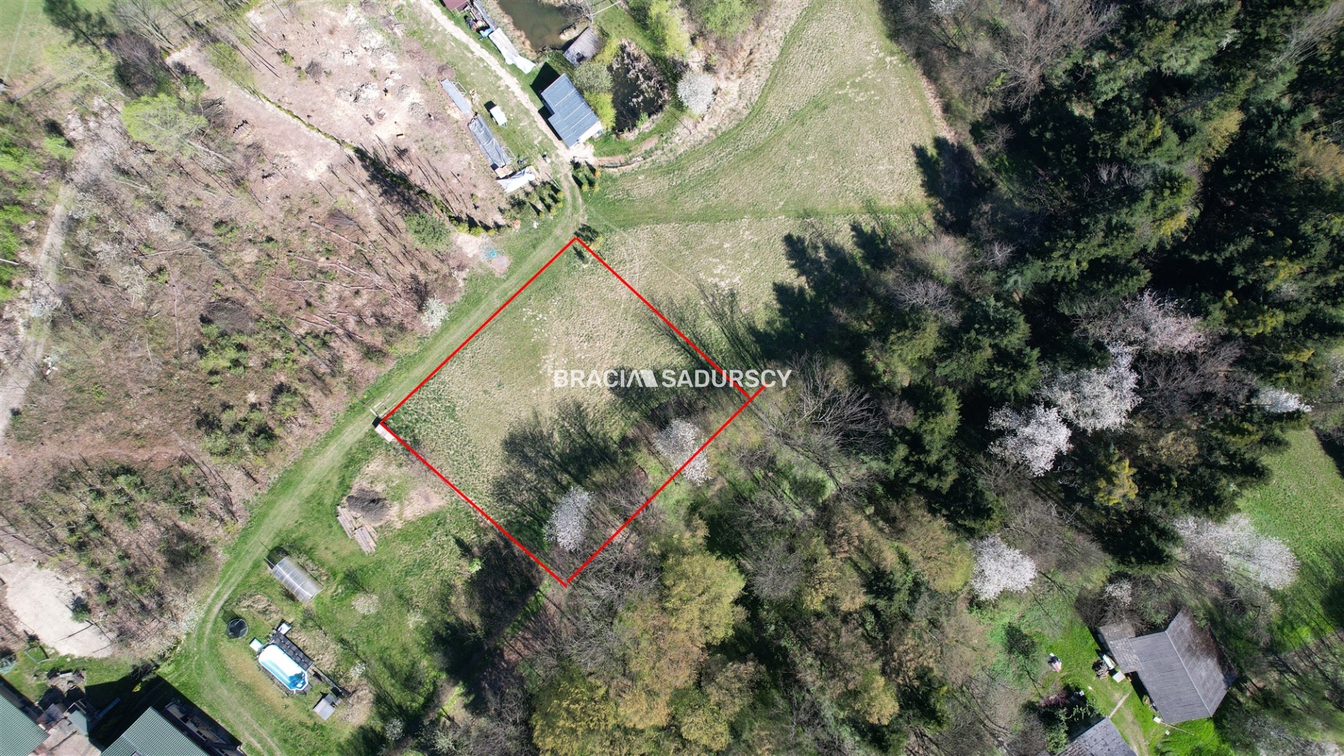 Działka objęta jest miejscowym planem zagospodarowania przestrzennego i składa się z powierzchni przeznaczonej pod zabudowę mieszkaniową jednorodzinną, zagrodową i usługową ( MU - 7,68 ar ) oraz terenów zielonych przeznaczonych do zalesienia ( RD - 4,58 ar ).