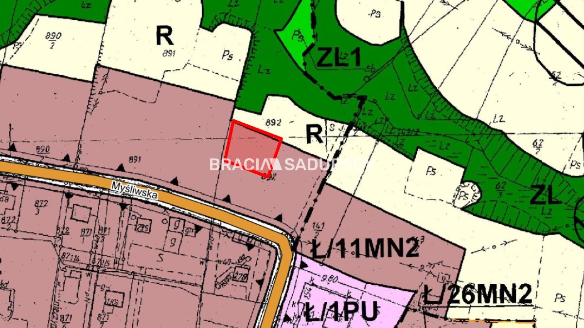 Działka w miejscowym planie zagospodarowania przestrzennego oznaczona jako MN2, teren zabudowy jednorodzinnej. Wskaźnik dopuszczalnej powierzchni zabudowy do 30%; wskaźnik terenu biologicznie czynnego, nie może być niższy niż 40%;. Maksymalna wysokość: 11 m dla budynków mieszkaniowych, usługowych i inwentarskich. Dachy dwuspadowe i wielospadowe, o nachyleniu połaci od 30˚ do 45˚.