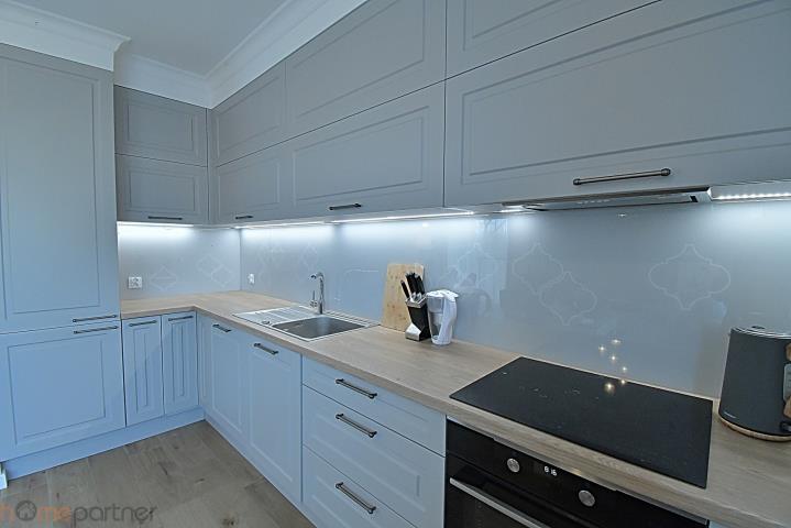 Lokal wykończony jest w podwyższonym standardzie, gotowy do zamieszkania: jasna, nowoczesna kolorystyka, starannie wykończone ściany i sufity, wysokiej jakości materiały wykończeniowe, nowoczesna zabudowa kuchenna, eleganckie meble i dodatki, duże okna zapewniające doskonałe doświetlenie wnętrz. Całość tworzy spójną, estetyczną i bardzo funkcjonalną przestrzeń.