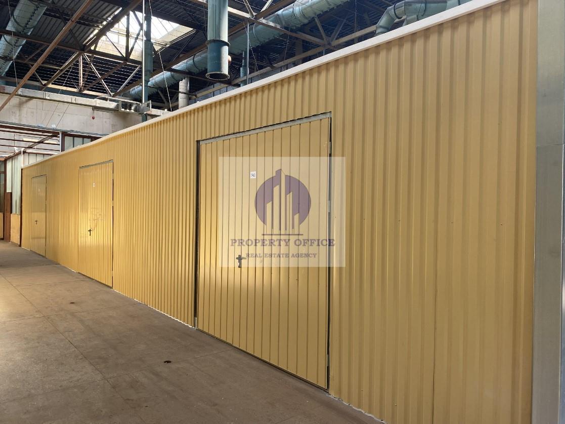 Magazyn wewnętrzny w hali na poziomie parteru wydzielony z dużej hali magazynowej.