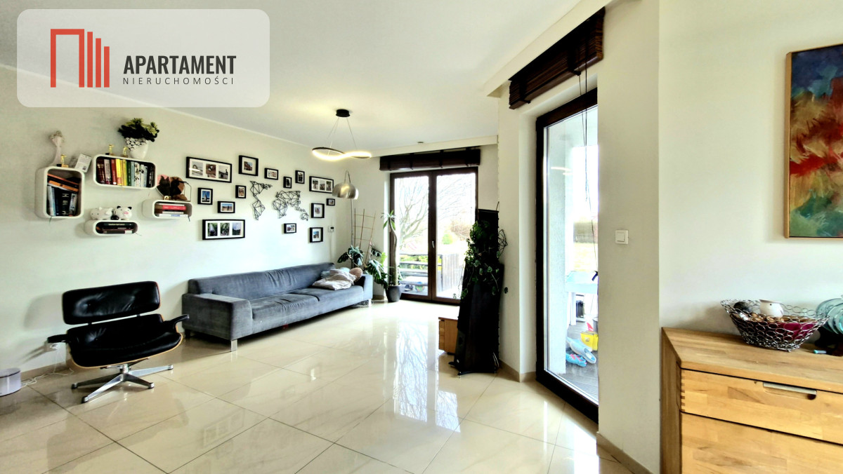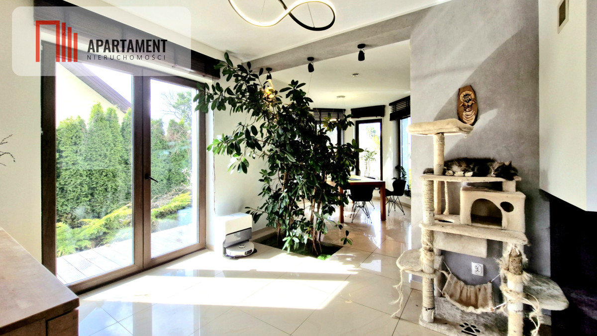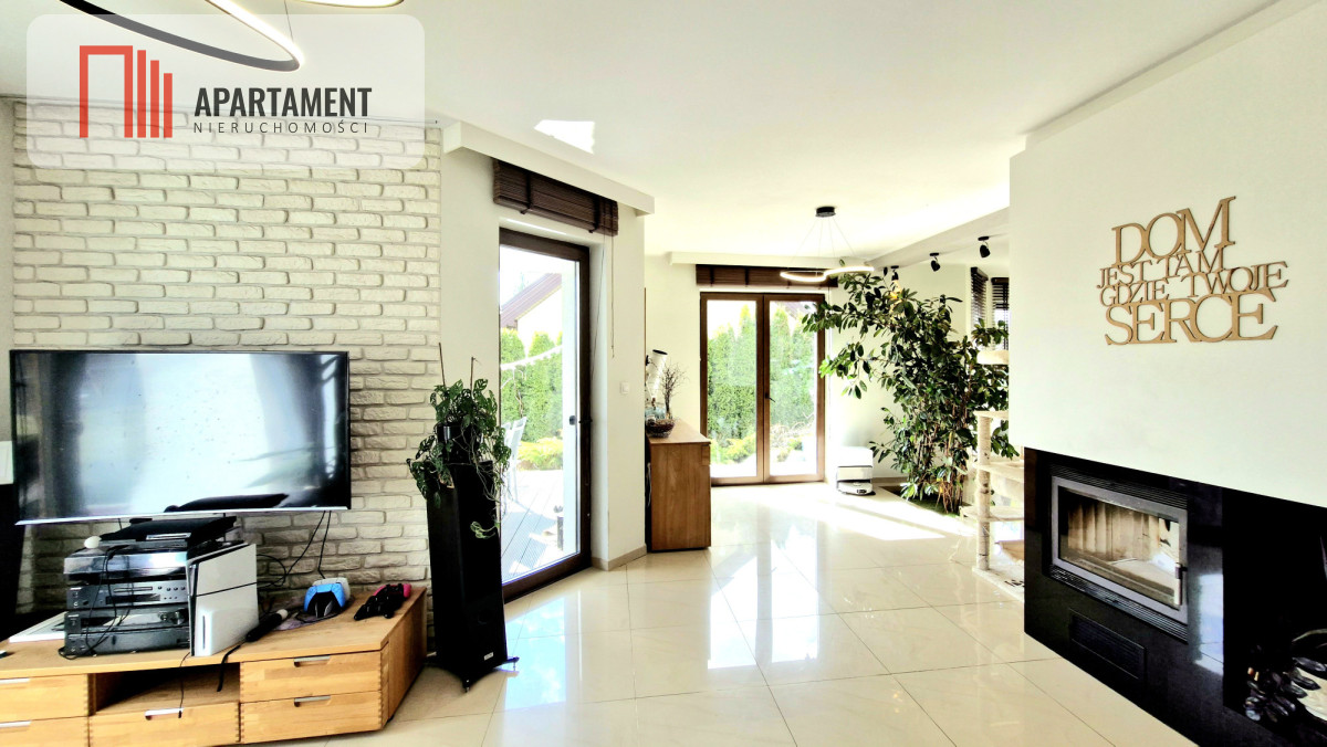 - przestronny salon z wyjściem na zadaszony taras, idealny na poranną kawę i letnie wieczory
