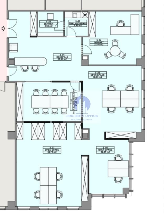do wynajęcia klimatyzowany lokal biurowy o pow. 280,50 m2 na 4 piętrze eleganckiego budynku biurowego na warszawskim Śródmieściu, w okolicach ul. Poznańskiej