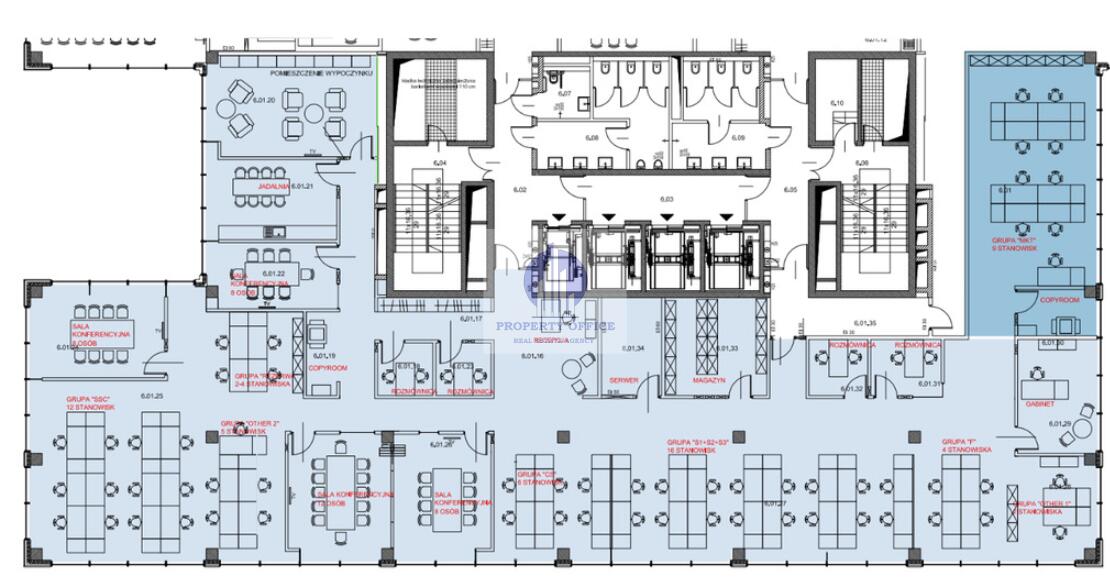 Do wynajęcia: klimatyzowany lokal biurowy o pow. 691 m2 na 6 piętrze nowoczesnego budynku biurowego na warszawskim Mokotowie, w okolicach ul. Konstruktorskiej