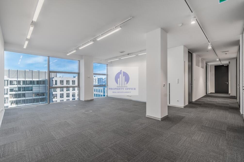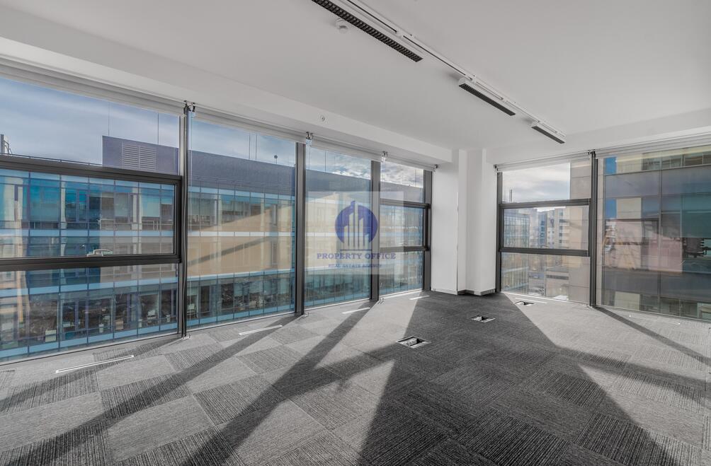 Przestronne i bardzo dobrze doświetlone biuro w budynku ze szklaną elewacją, zapewniającą doskonały dostęp do światła dziennego.