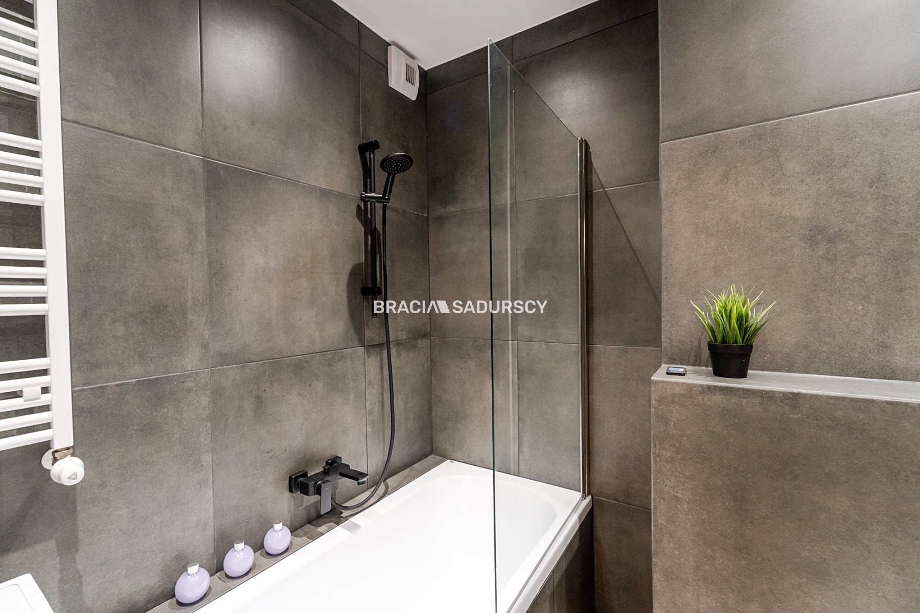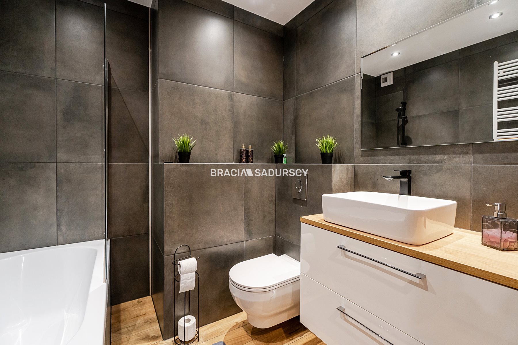 komfortowej, przestronnej łazienki wyposażonej zarówno w wannę, jak i natrysk.