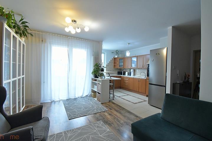Panele podłogowe o wysokiej klasie ścieralności, klimatyzacja w salonie, rolety wewnętrzne tekstylne na wszystkich oknach, W kuchni oraz w garderobie pod płytkami zamontowano maty grzewcze elektryczne, w łazience podłoga też jest ciepła, ponieważ przechodzą tam rury grzewcze. Kuchnia wyposażona w płytę indukcyjną, piekarnik, zmywarka.