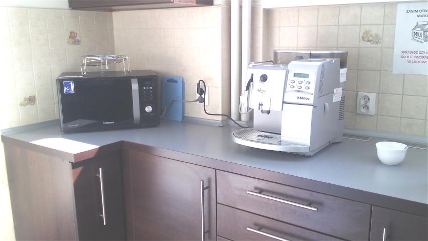 Ogólnodostępny pokój socjalny na piętrze.