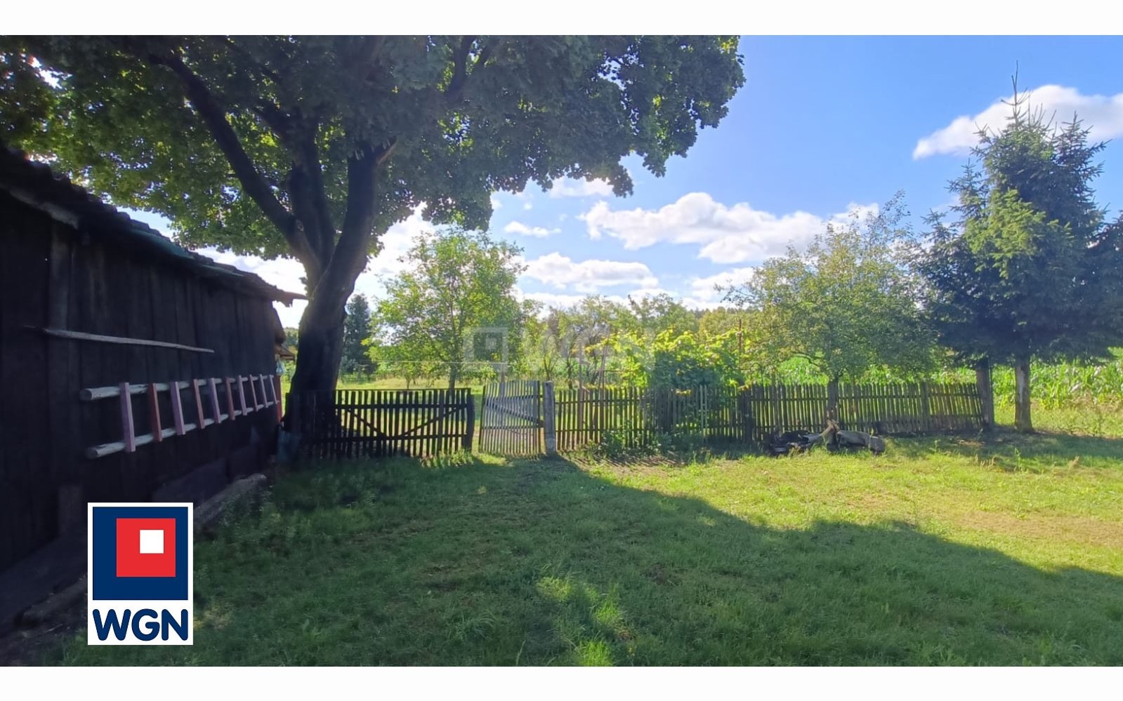 Dom stoi ma ponad piętnastoarowej działce, na której znajdują się również budynki gospodarcze.