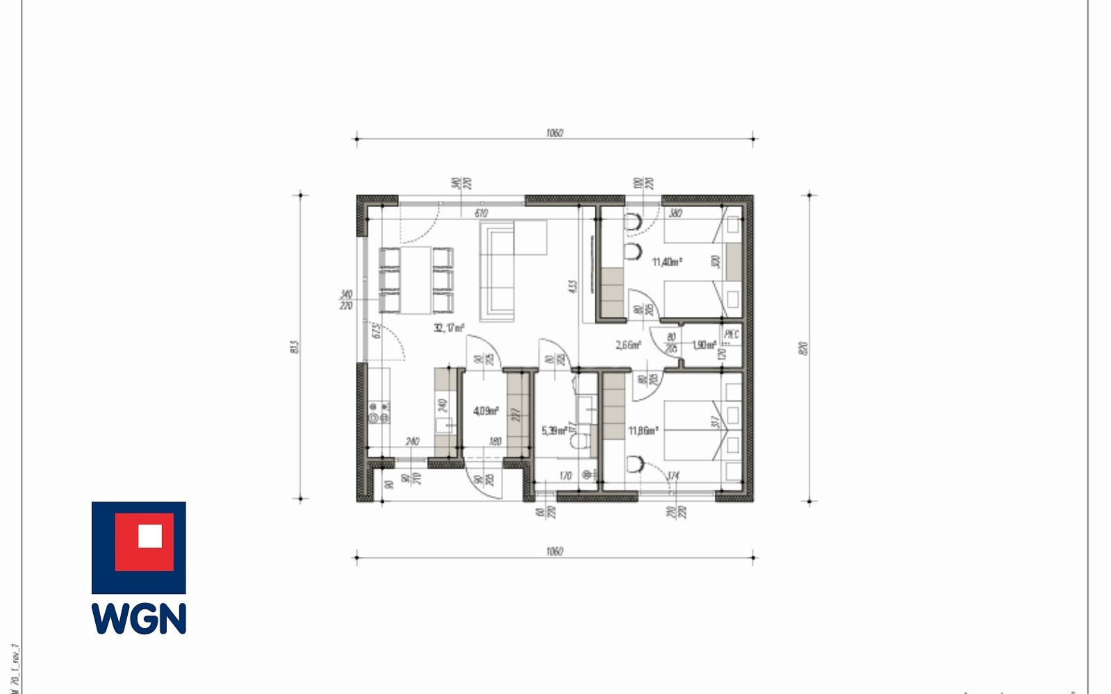 - salon z aneksem kuchennym 32,17m2