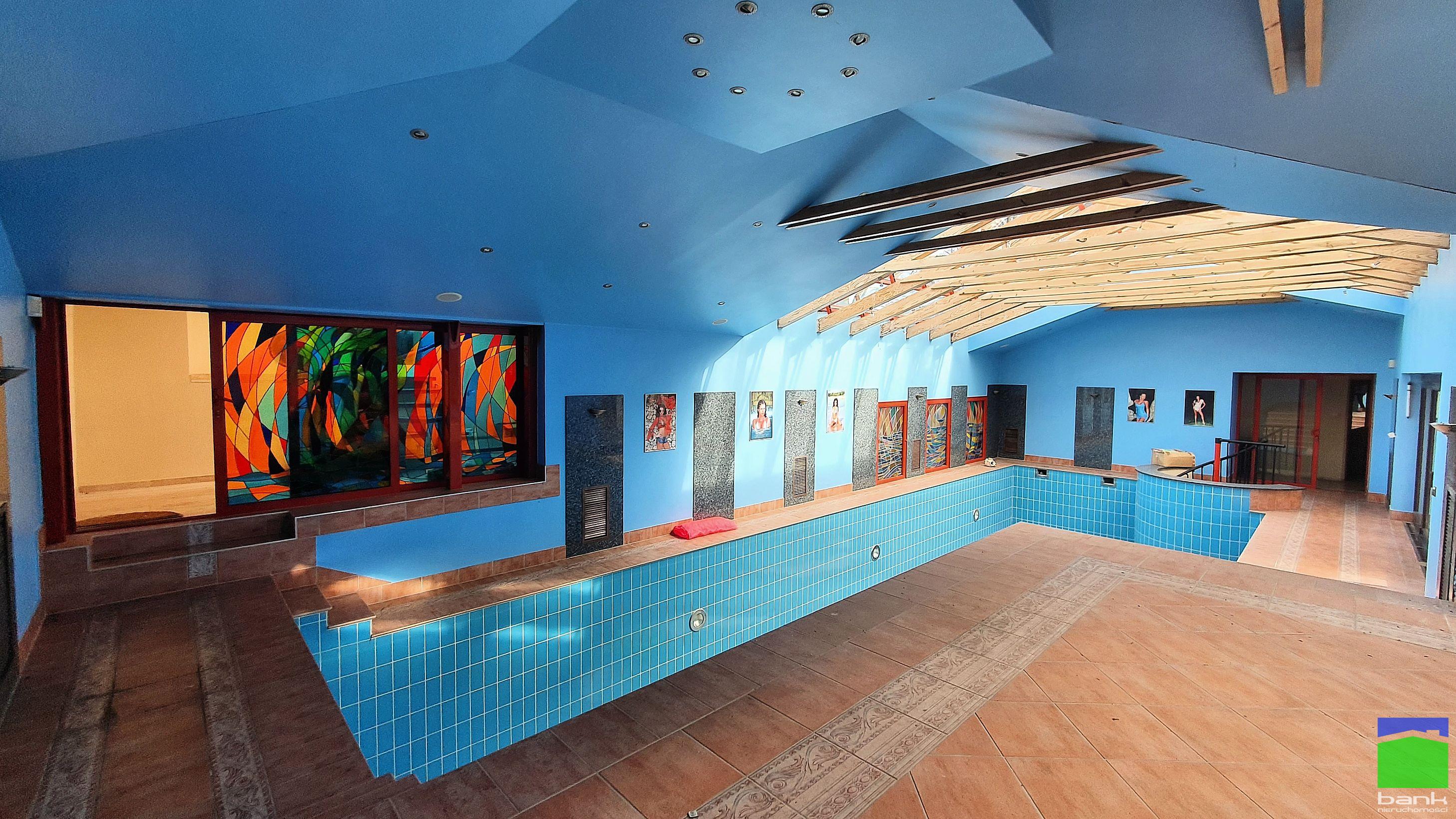 Wolnostojący dom z basenem, połączony z drugim budynkiem, o łącznej powierzchni <b>1400 m2 (os. Marysin)</b>.