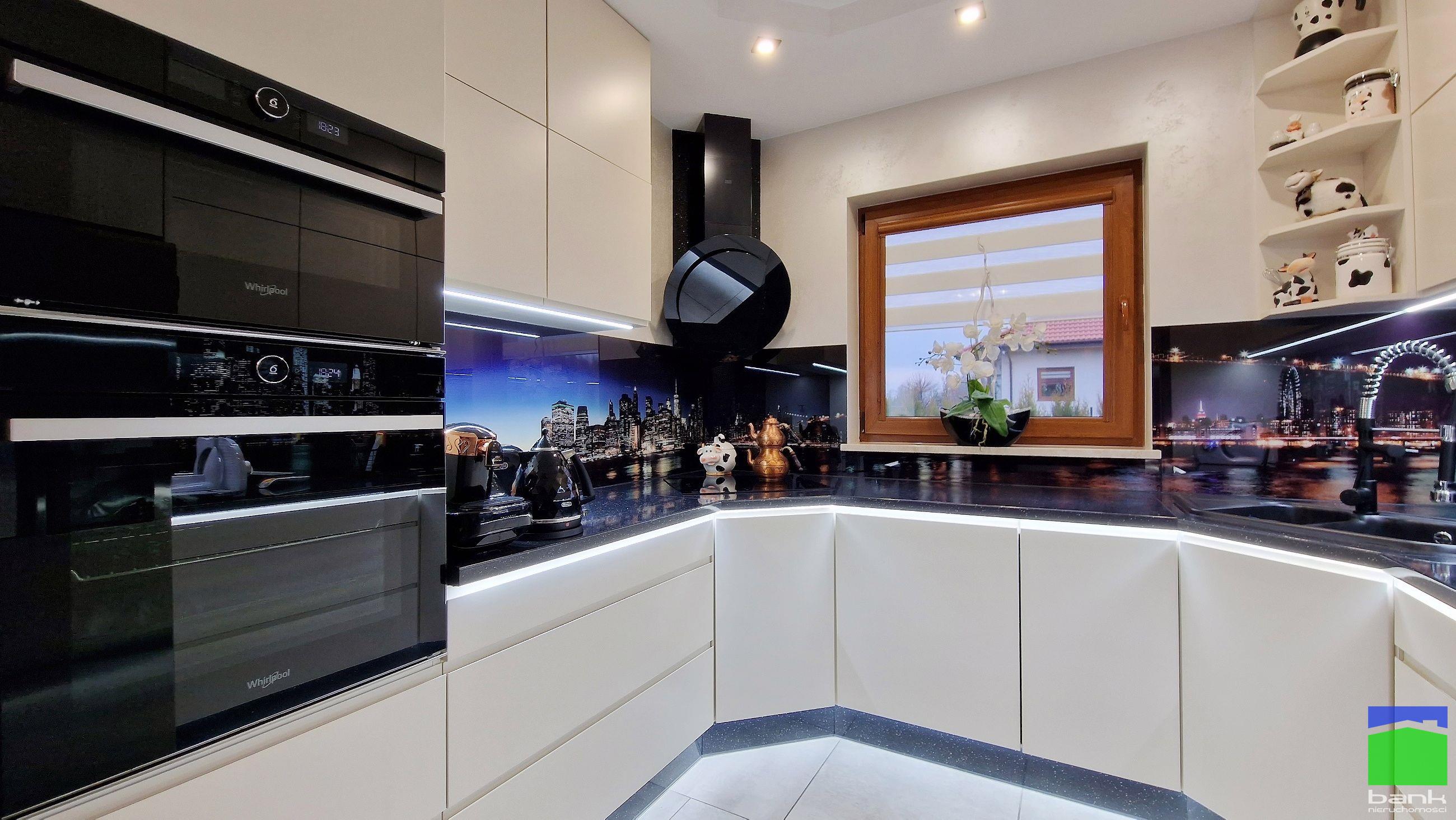 Wnętrze wykończone materiałami wysokiej jakości firmy ECORSON takimi jak trawertyn czy tynki dekoracyjne.