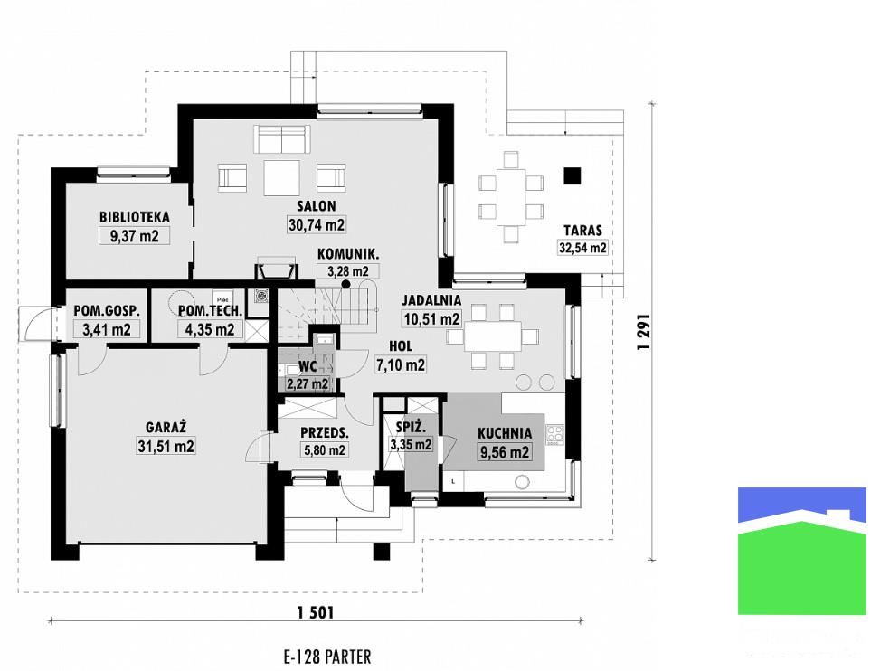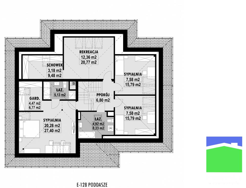 (typ E-285 dla działki 977 m2 oraz E-164A dla działki 2340 m2).