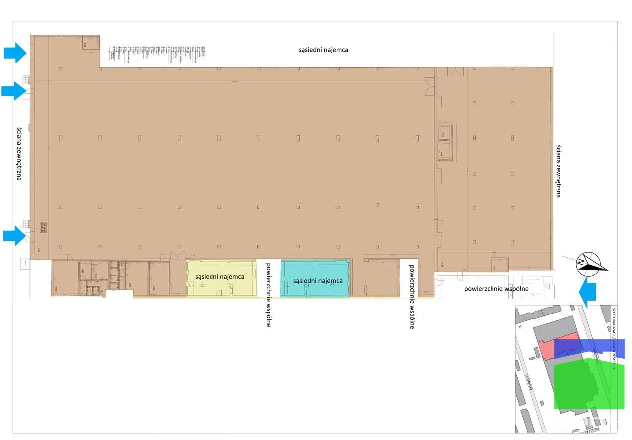 - dostęp przez bramę przemysłową (3m x 3m) z rampą mechaniczną od strony ul. Senatorskiej i wejściem od strony ul. Milionowej