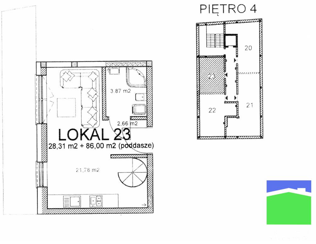 Lokal nr 23 - 114,31 m2 (1 pok. 28,31 m2 z poddaszem 86 m2 open space, taras) <b>miejsce parkingowe w cenie</b>
