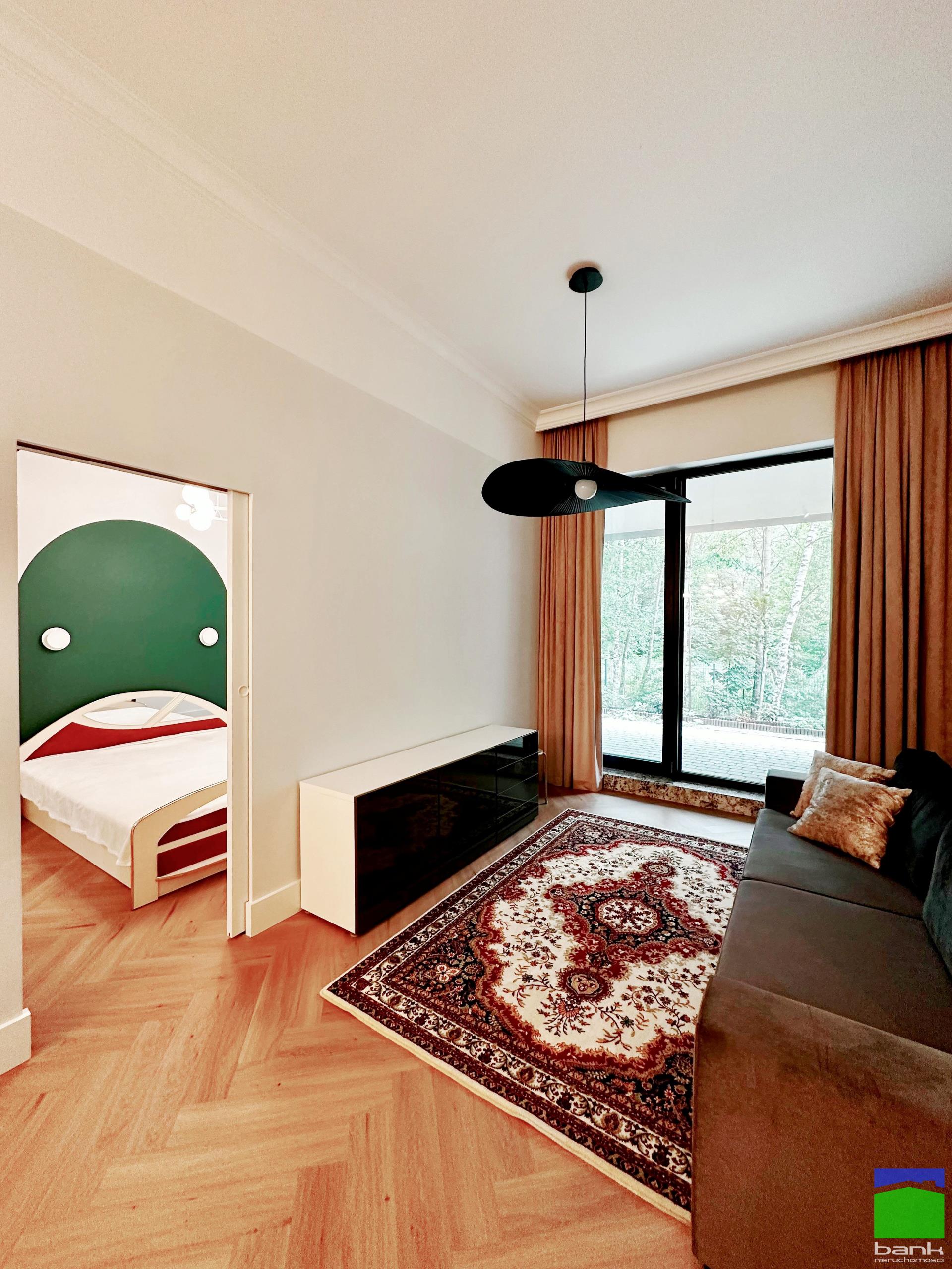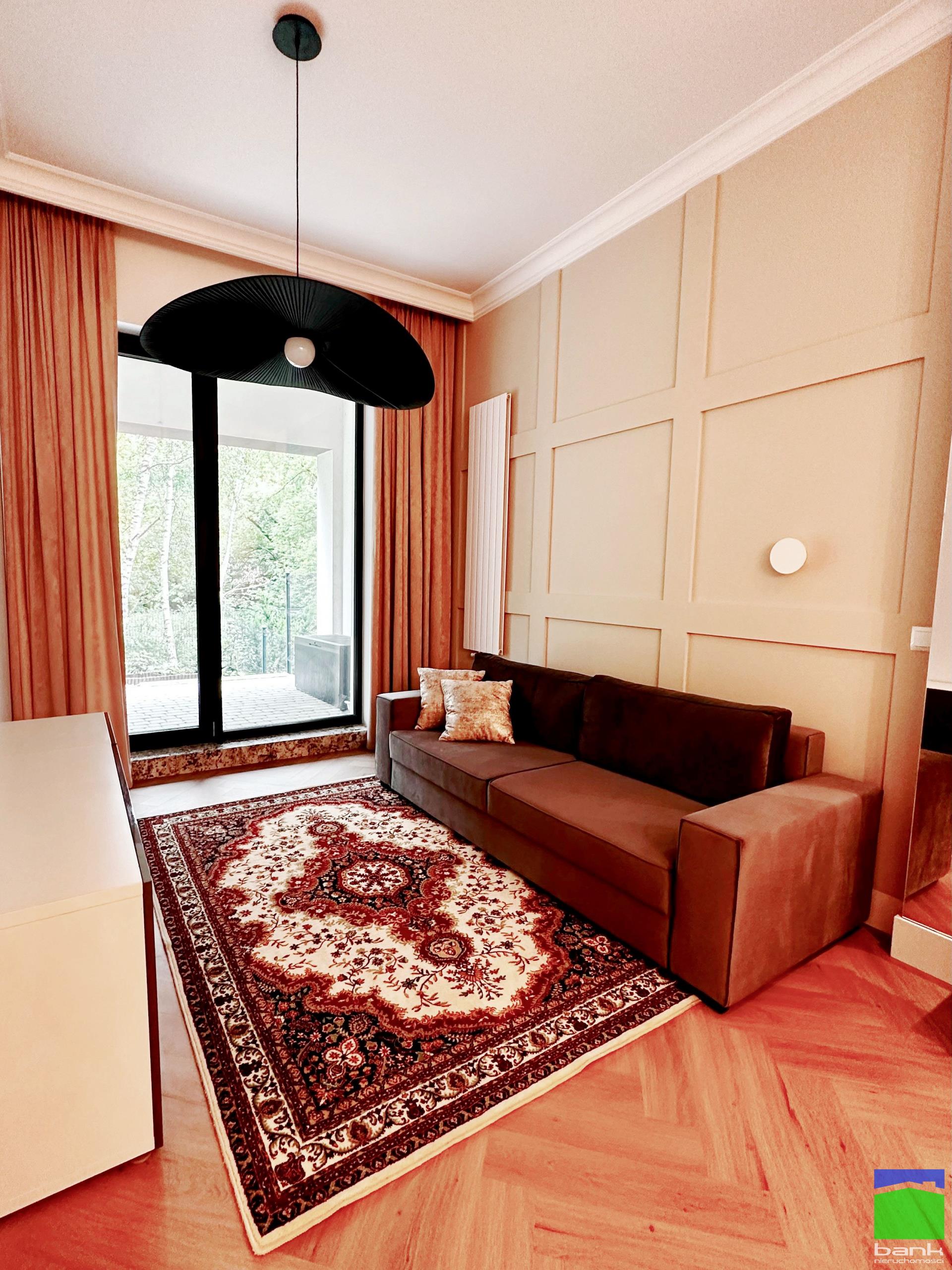 Przestronny salon z aneksem kuchennym (zmywarka, piekarnik), spiżarnia, niezależna sypialnia z szafami w zabudowie oraz garderobą.