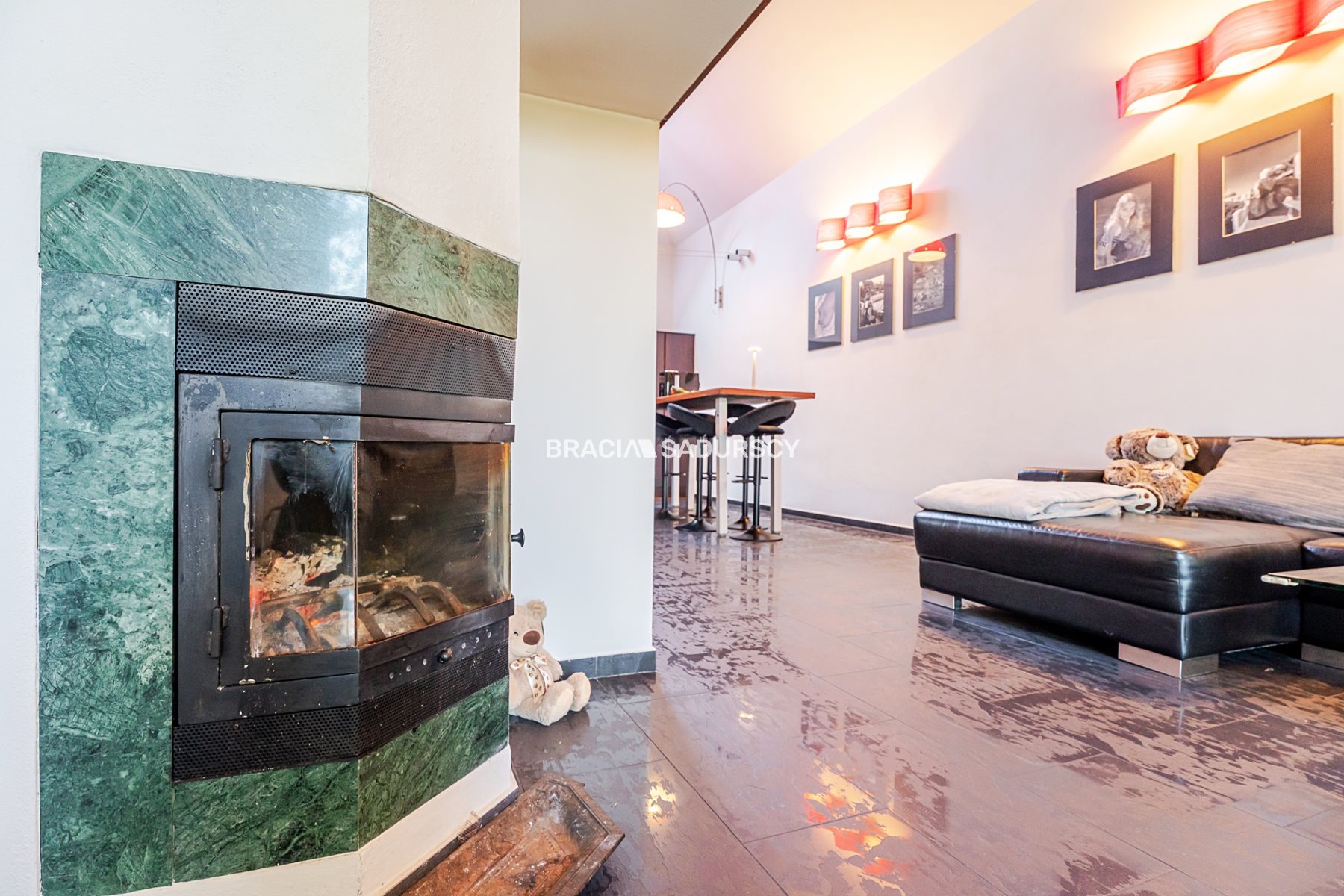 Dom posiada nowoczesny kominek, zbiornik na deszczówkę.