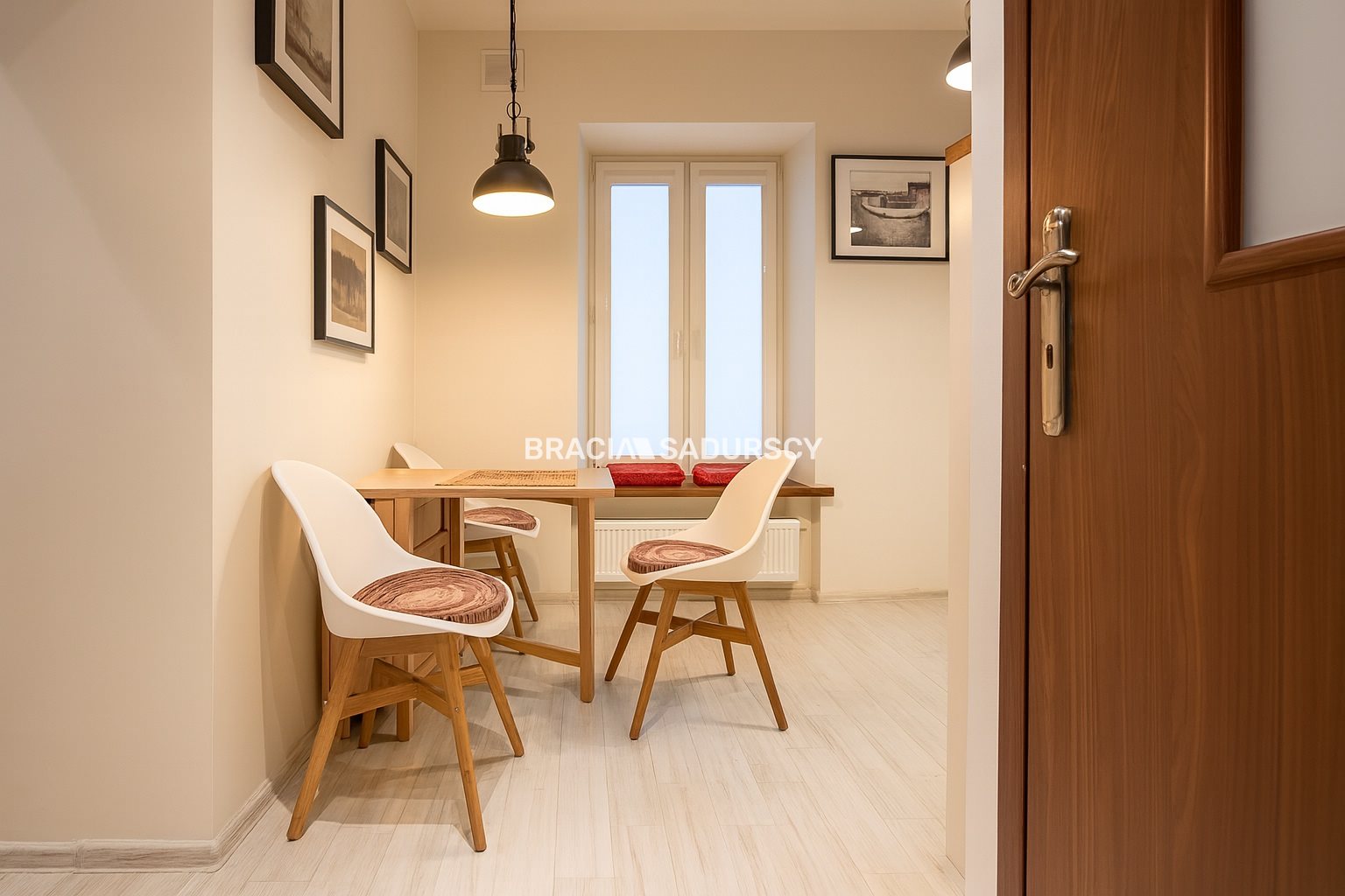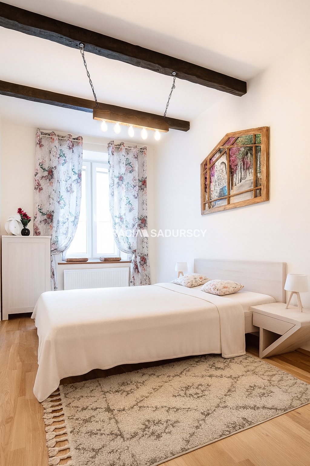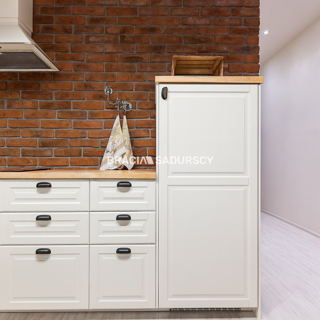 Mniejszy pokój wykończony w stylu prowansalskim, zakupiono do niego drewniane meble z drewna brzozowego; duży pokój wykończony modernistycznie, w stylu kolejowym (fototapeta, meble drewniane seria Railway- drewno mango). Mieszkanie wykończone i wyposażone jak na zdjęciach. Widok z obu pokoi jest na ul. Nową, szerokie parapety sprawiają że w ładne dni można relaksować się siedząc z kawą i książką, czując klimat Kazimierza.