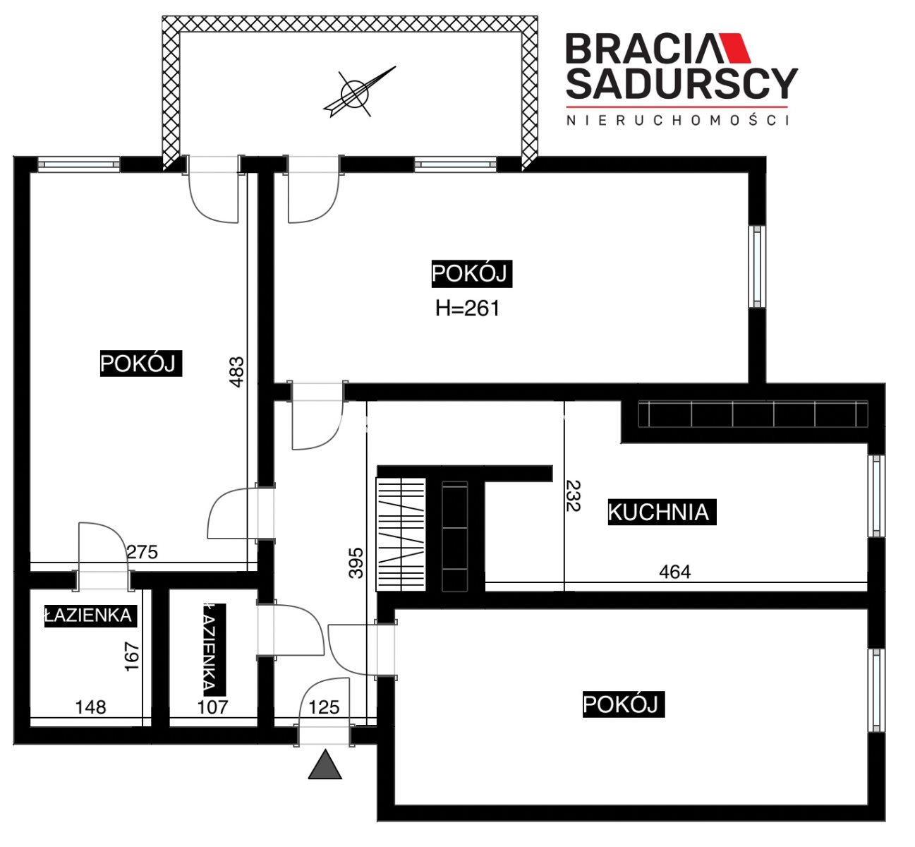 - trzy niezależne pokoje, z dwóch wyjścia na balkon,