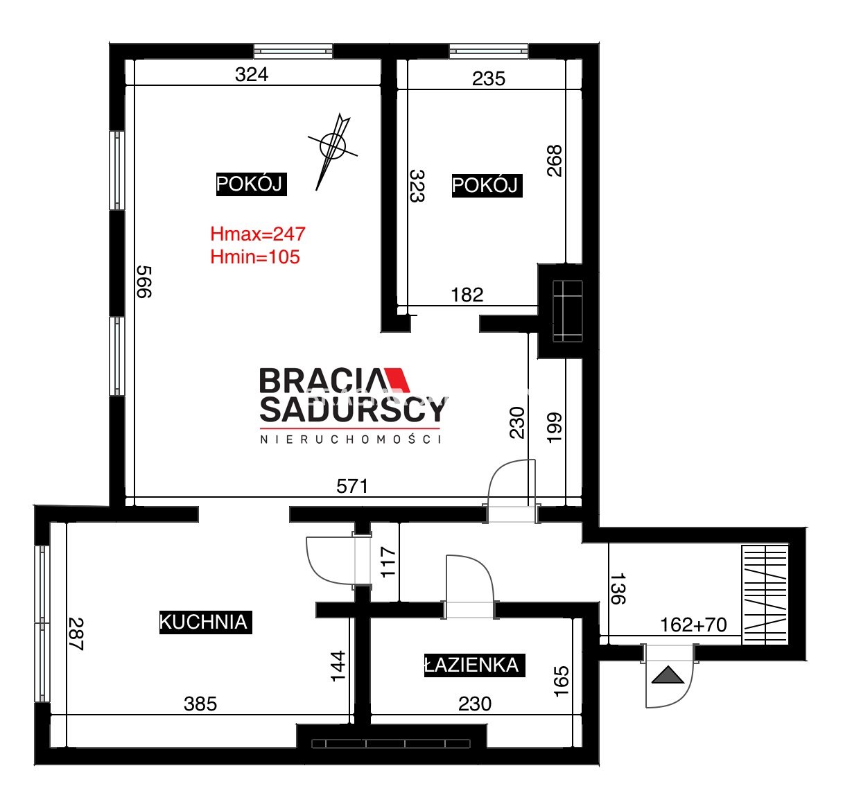 33,3 m² użytkowe, ale około 50 m² po podłodze dzięki czemu w rzeczywistości mieszkanie jest przestronne i wygodne w codziennym użytkowaniu