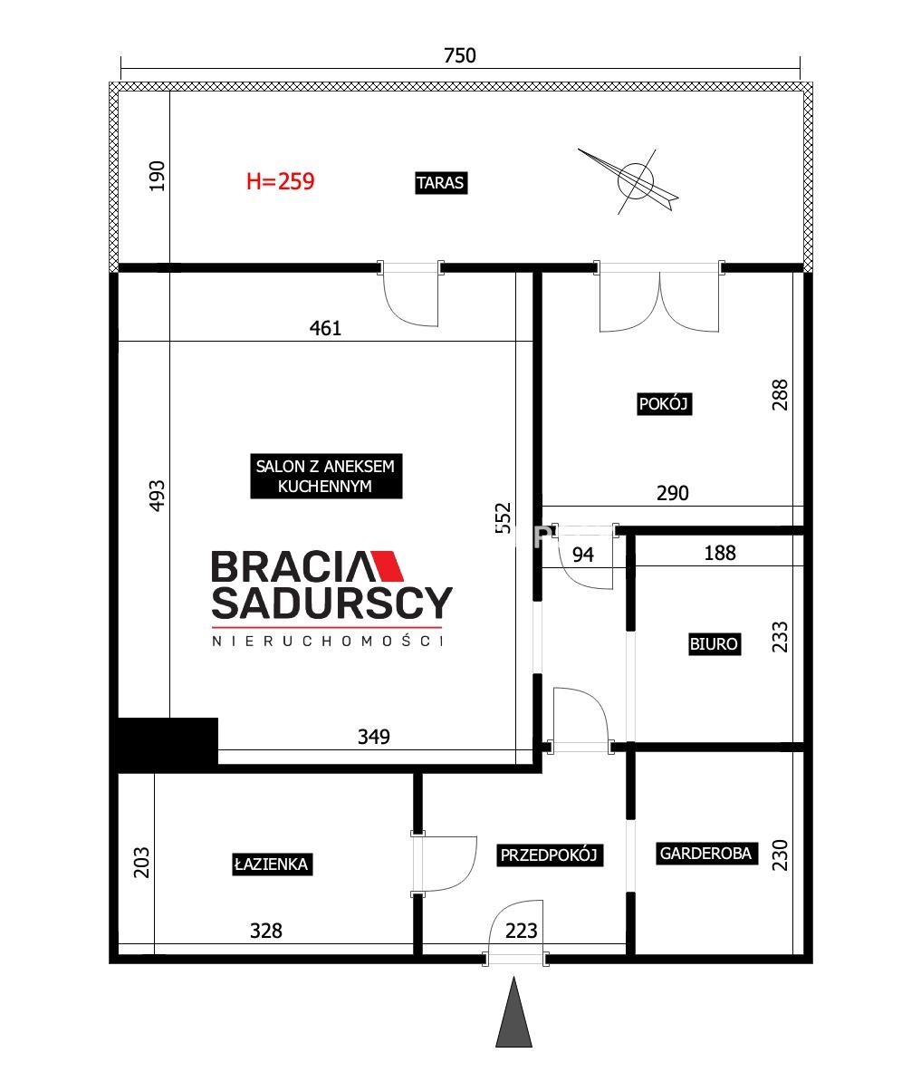 2-pokojowe mieszkanie 56,2m² z dużym tarasem | garderoba + strefa biurowa/home office |