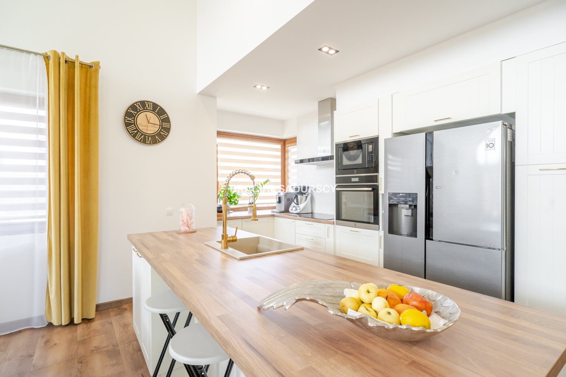 Kuchnia w pełni wyposażona w sprzęt Electrolux (piekarnik, mikrofalówka, płyta grzewcza, okap, zmywarka),