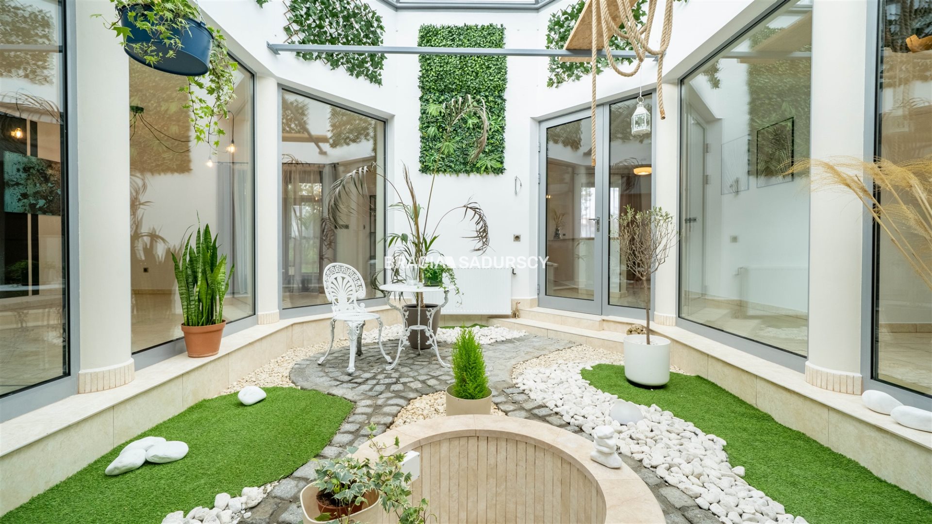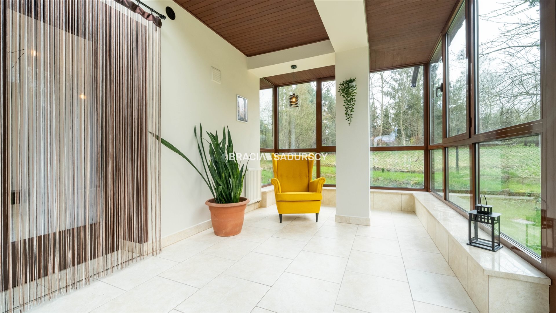 Nieruchomość wybudowana według indywidualnego projektu - na planie koła - środek nieruchomości to oranżeria z dużą ilością światła i refleksów słonecznych rozchodzących się po całym domu. Do dyspozycji najemców jest duża, jasna kuchnia z jadalnią oraz salon z wyjściem na zabudowany całoroczny taras (ogród zimowy). Do tego mamy trzy sypialnie, dużą łazienkę z wanną oraz prysznicem do wyboru, garderobę, WC i pomieszczenie gospodarcze.