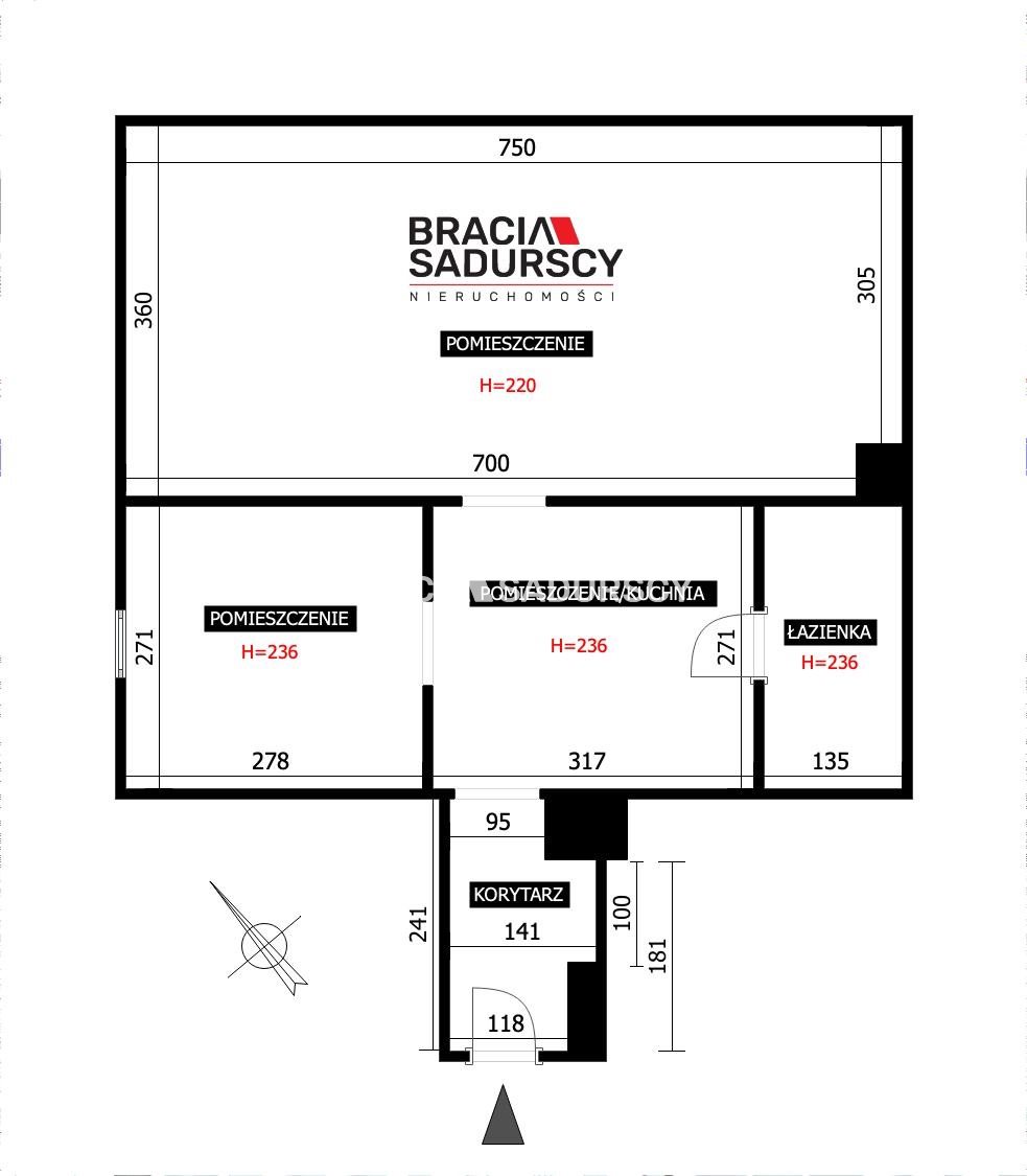 - pomieszczenie z oknem o pow. ok. 7,50 m2, wys. 2,36 m,