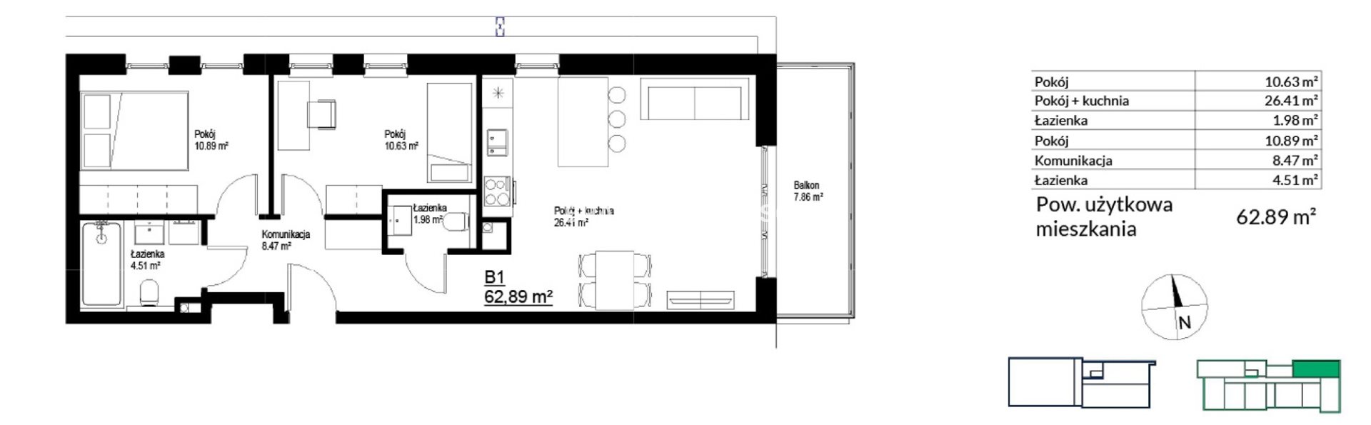 | Pow. użytkowa: | 62.89 m2 |
