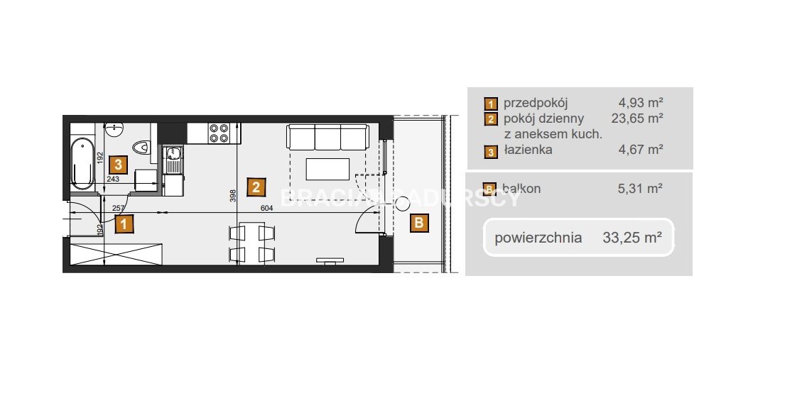 | Pow. użytkowa: | 33.25 m2 |