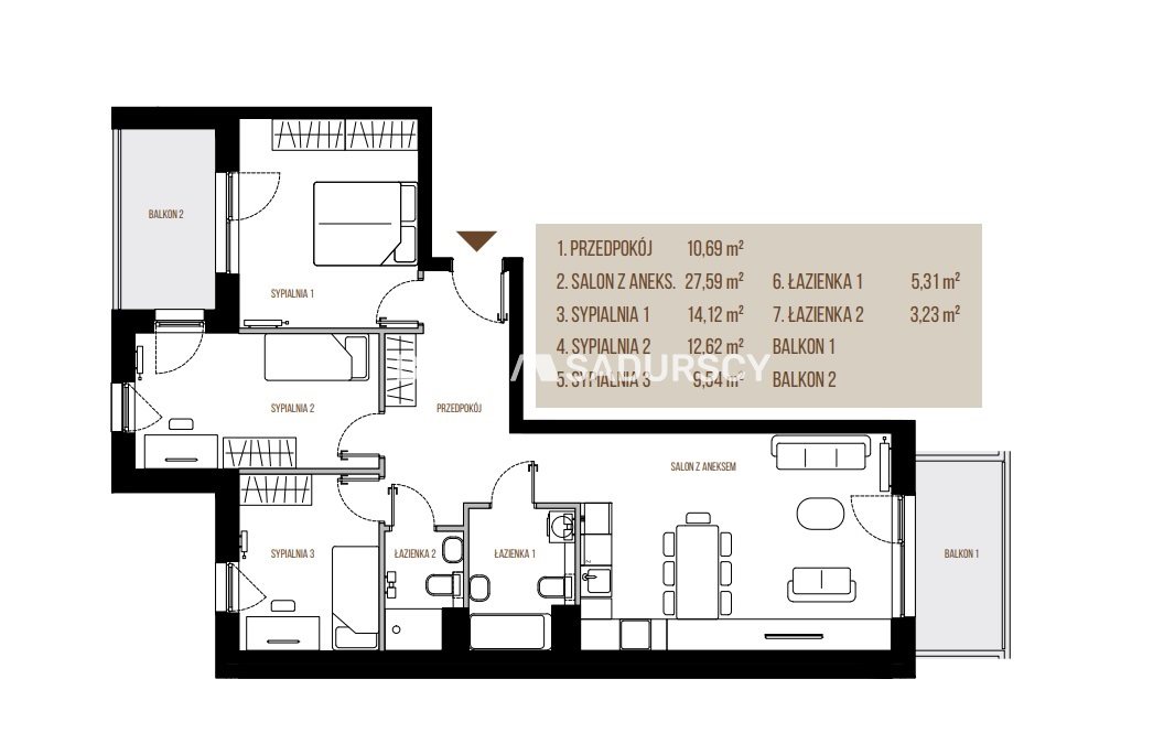 Mieszkania o powierzchni od 39 m² do 114 m²