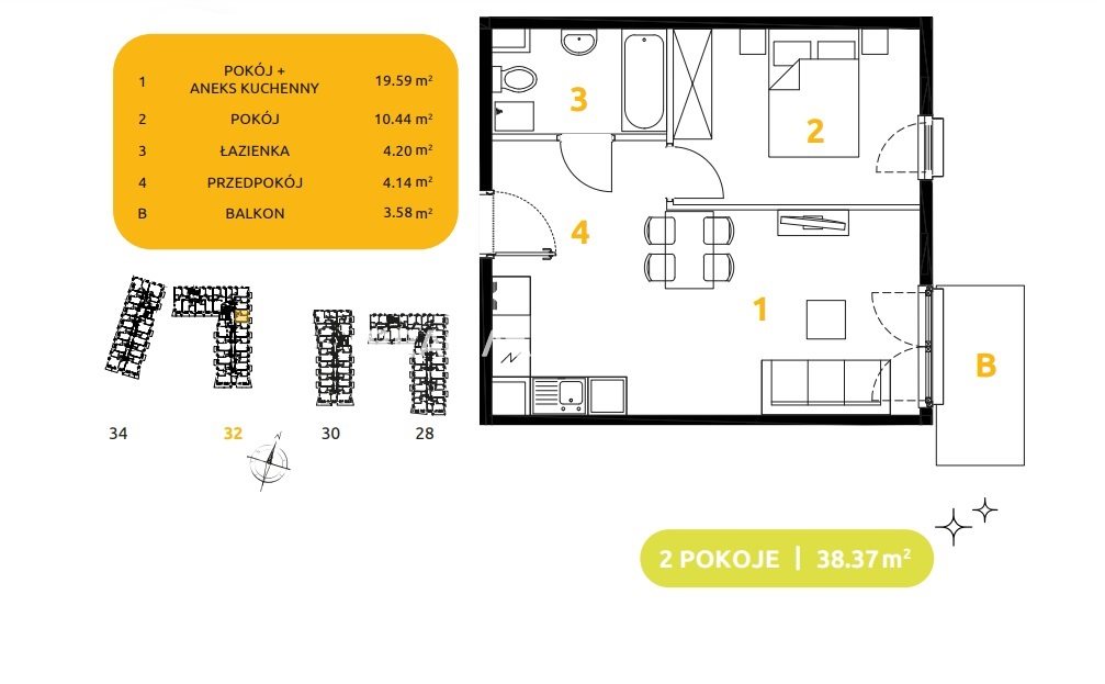 Wszystkie z mieszkań 1-, 2-, 3- i 4-pokojowych, w metrażach od 28 m2 do 100m2 będą posiadały przestronne balkony bądź ogródki, a w przypadku wyższych pięter - tarasy.