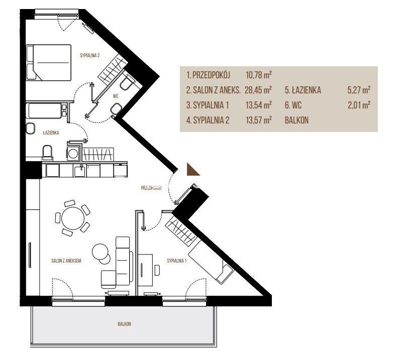 Mieszkania o powierzchni od 39 m² do 114 m²
