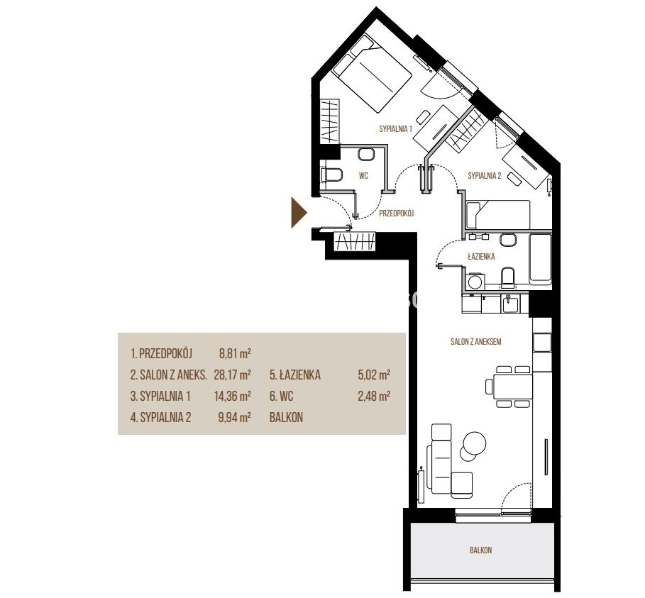 Mieszkania o powierzchni od 39 m² do 114 m²