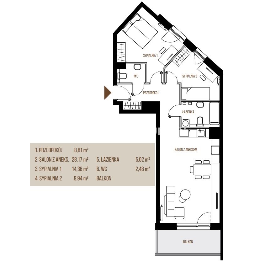 Mieszkania o powierzchni od 39 m² do 114 m²