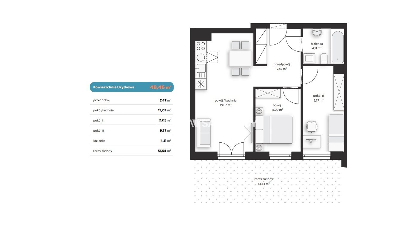 | Pow. użytkowa: | 48.46 m2 |