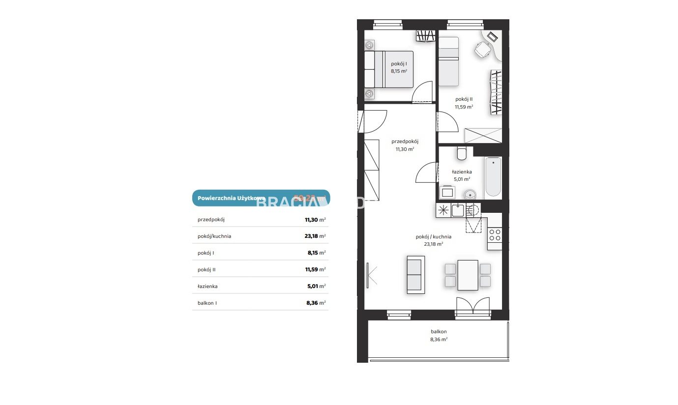 Każdy lokal posiada balkon, taras lub ogródek , stanowiący doskonałą przestrzeń do wypoczynku w otoczeniu zieleni.