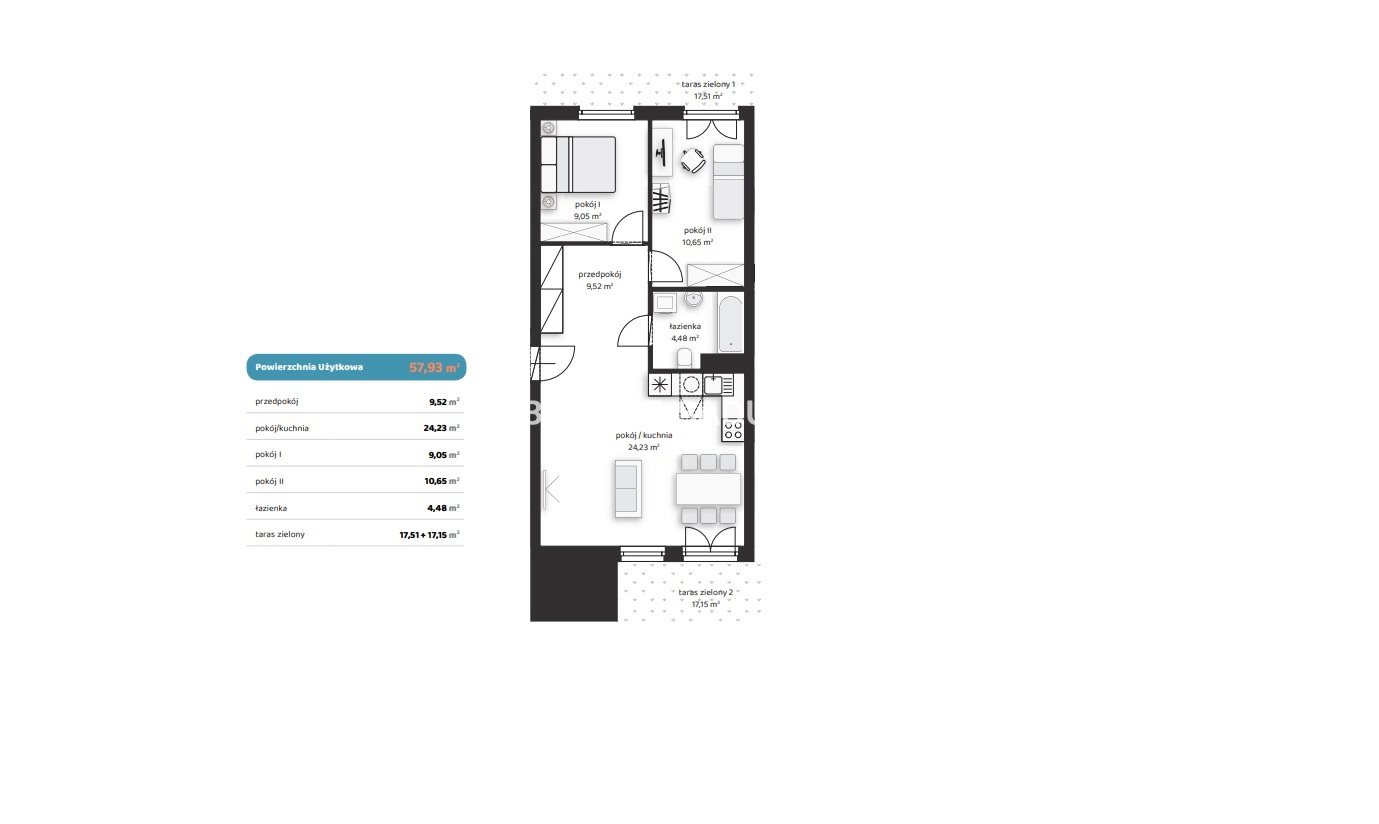 Każdy lokal posiada balkon, taras lub ogródek , stanowiący doskonałą przestrzeń do wypoczynku w otoczeniu zieleni.